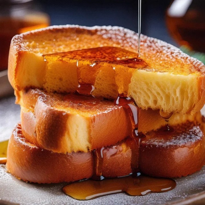 Transfiere las tostadas francesas a un plato y espolvorea con azúcar glas. Acompáñalas con sirope, miel o mermelada al gusto. O puedes agregar fruta fresca. Este postre es perfecto para un desayuno dulce, o un brunch especial.