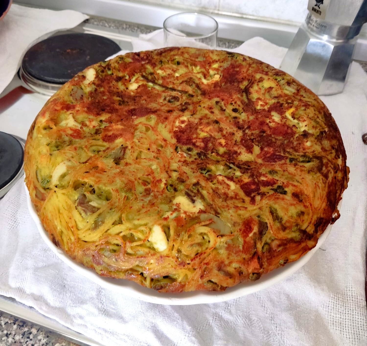 Si les digo que yo amo esta tortilla de pasta es poco, me parece que es uno de los platos rústicos más apetitosos del mundo; les voy a pasar la receta en estos días para que puedan replicarla en sus casas, aunque estoy consciente que lleva productos locales, preguntaré por los productos sustitutos para los que estén fuera de Italia.