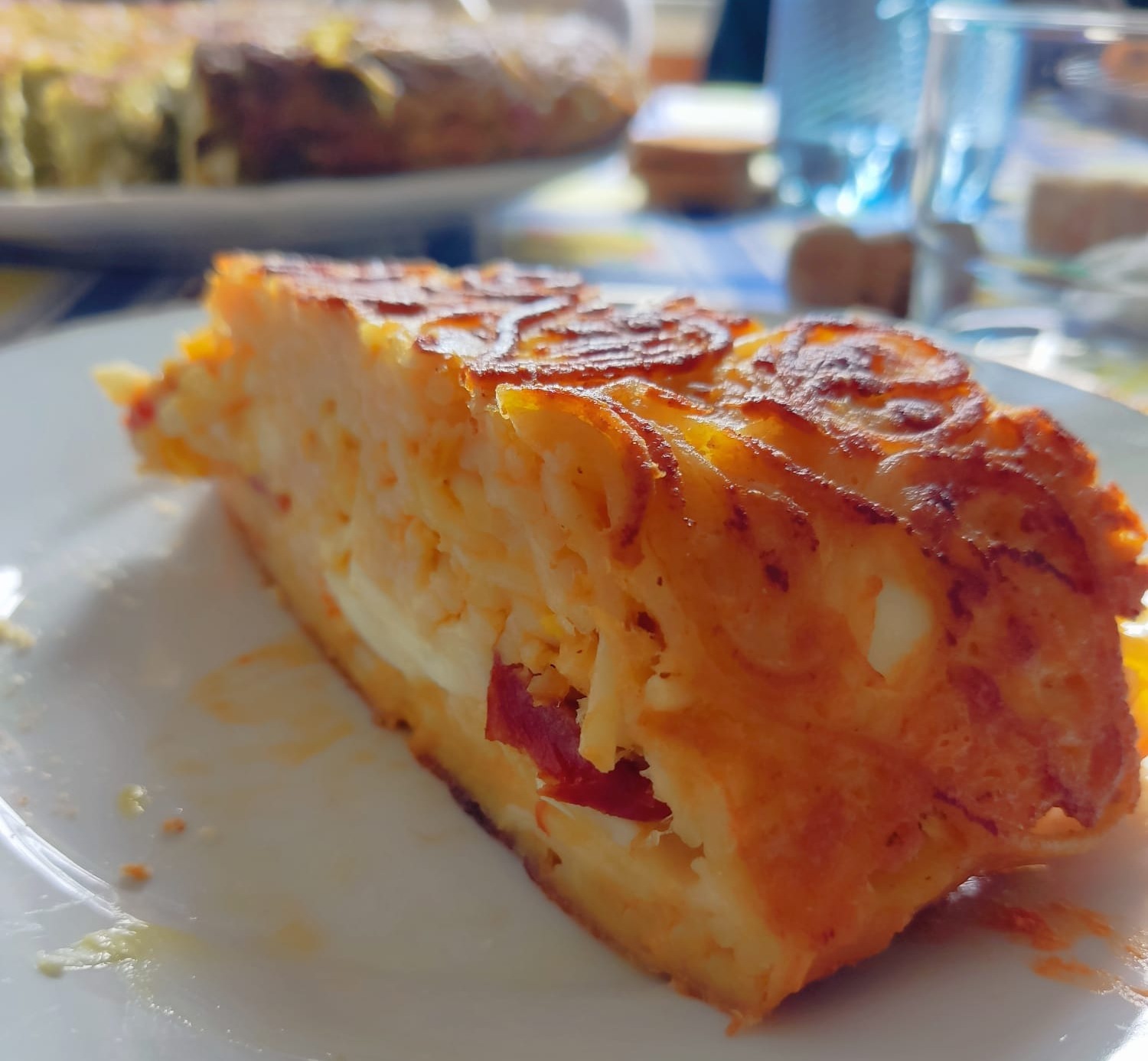 Para que tengan un poco de historia, este plato es una antigua tradición que nació en los pueblos durante la época del Carnaval, cuando los aldeanos enmascarados recorrían las plazas bailando y divirtiéndose, intercambiando regalos como huevos, salami, queso y vino. Al final de la jornada, se reunían en sus propias casas para preparar grandes tortillas de pasta con los productos donados y compartían la noche comiendo juntos. Esta tradición continua viva hasta nuestros días. En años anteriores, se hacían una muestra y una competencia para determinar qué cocinero ofrecía la mejor.