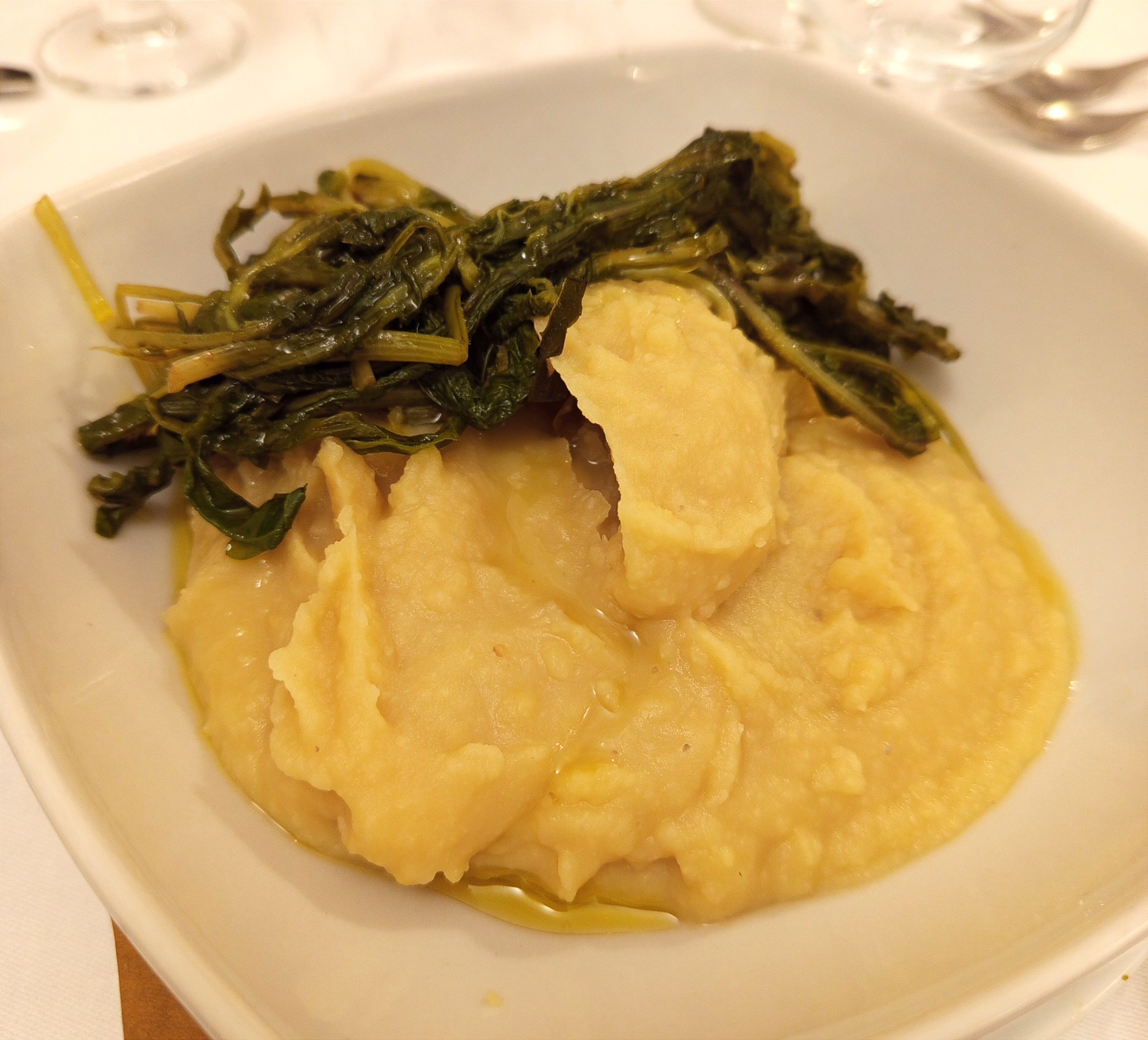 Allí, probé un plato del que me habían hablado, pero nunca lo había probado: crema de habas con verduras… Me pareció regia. Se hace con habas secas, porque las habas frescas no le darían el gusto característico que tiene. Voy a buscar la receta (y las habas secas) y probaré hacerla.