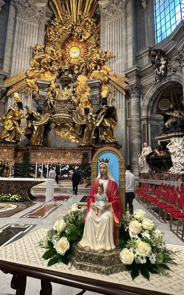 Si bien la ceremonia fue muy emotiva, yo me quedo con una imagen que mandó una amiga que fue a la ceremonia: la virgen de Coromoto en el altar principal de la basílica de San Pedro. ¡Esta imagen me emocionó mucho! Tal vez porque la distancia geográfica no permite percibir que la fe no tiene distancia y ver la imagen de la virgen allí, frente a «altar de los altares», además de la sorpresa que supuso, el tamaño de la imagen me impresionó.