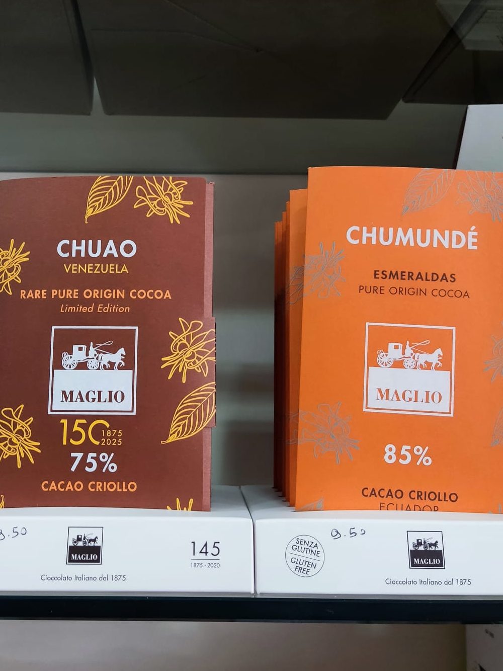 Y es precisamente ese carácter el que dialoga, casi sin esfuerzo, con el chocolate venezolano elaborado por la casa italiana Maglio. Una empresa con larga tradición chocolatera que trabaja cacaos de origen venezolano —criollos intensos, complejos, profundamente aromáticos— y los transforma sin domesticarlos del todo.